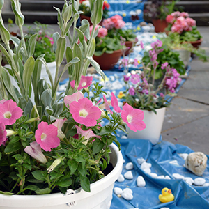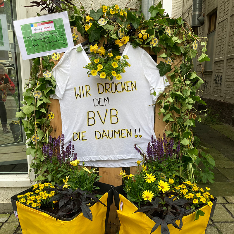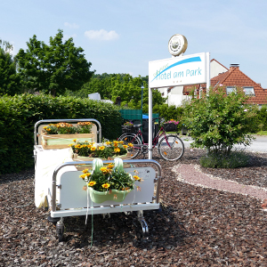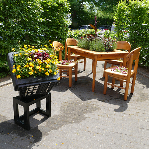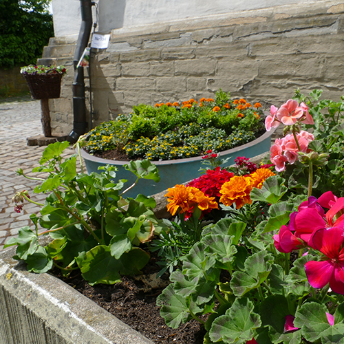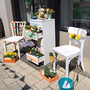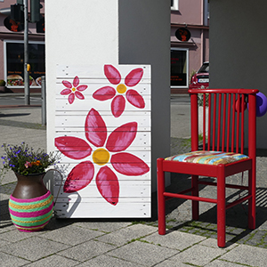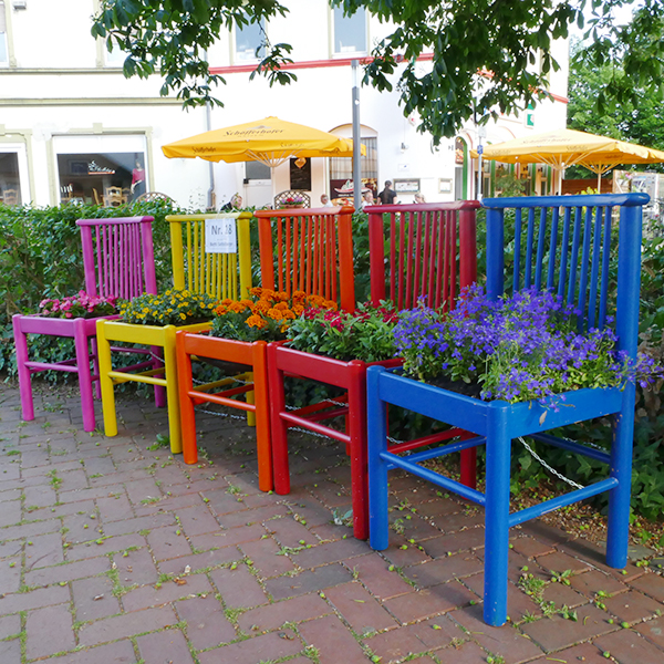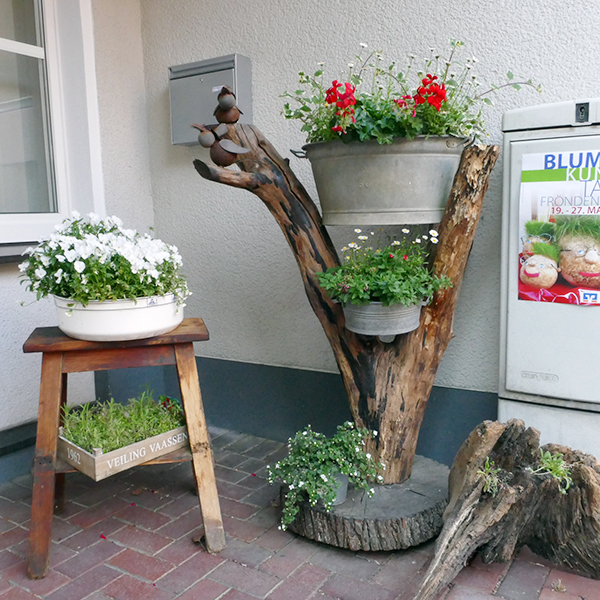 Hintergrund: Zum Auftakt der BlumenKunstTage 2016 ließen sich 35 ansässige Geschäftsleute, Vereine und Privatpersonen spontan von der Idee begeistern. Rund um den Marktplatz, die Stiftskirche, die Alleestraße und den Himmelmannpark wurde den Fröndenbergern und Besuchern an 35 Orten bezaubernde und kreative Blumenarrangements, verrückte Ideen und witzige Dekorationen präsentiert.