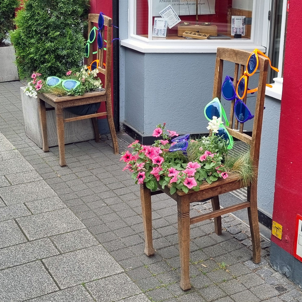 Hintergrund: Zum Auftakt der BlumenKunstTage 2016 ließen sich 35 ansässige Geschäftsleute, Vereine und Privatpersonen spontan von der Idee begeistern. Rund um den Marktplatz, die Stiftskirche, die Alleestraße und den Himmelmannpark wurde den Fröndenbergern und Besuchern an damals 35 Orten bezaubernde und kreative Blumenarrangements, verrückte Ideen und witzige Dekorationen präsentiert.